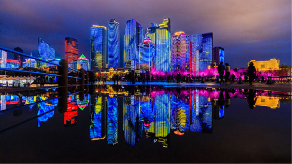 超級場景營銷舞臺 中國頂尖團(tuán)隊(duì)呈現(xiàn)上合峰會主題燈光show 以城市為舞臺,以天地為畫布,量身設(shè)計,巨資打造 展現(xiàn)中國的氣度和實(shí)力,成為青島城市新名片