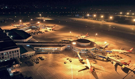 北京首都國際機場,距離市中心25公里,為4F級民用機場,是中國三大門戶復合樞紐之一,世界超大型機場。北京首都國際機場擁有三座航站樓,面積共計141萬平方米;機位數量314個;有兩條4E級跑道、一條4F級跑道。