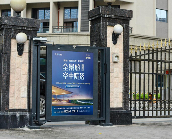 一些廣告公司在新媒體的開發上大作文章,把傳統的地面媒體搬到停車場,社區大門口及社會停車場。其中,道閘廣告媒體,以精美、人性化的畫面表現形式得到多家物業的支持。全國范圍內已初步形成以及北上廣深為主體,輻射全國的道閘媒體運營平臺。廣告發布載體為道閘擋桿,在社區現有道閘擋桿上設置廣告牌,也可為LED顯示屏或LCD液晶顯示屏。同時還廣泛應用于各主要交通干道的沿街商圈、大型停車場、商住小區、商業廣場、寫字樓、餐飲酒店、高速公路、省國道收費站等交通要塞。