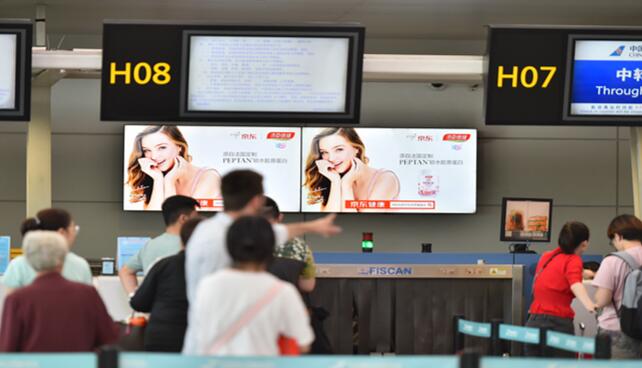 杭州機場電子屏廣告 位置:T3國內安檢口上方