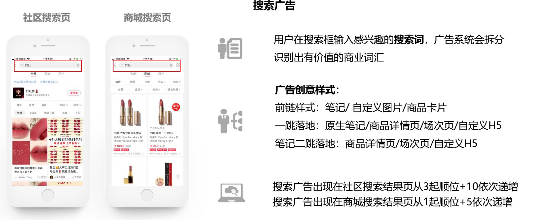 3、大量的年輕用戶習(xí)慣性通過小紅書搜索筆記分享,在看到一個廣告的時候他們也是非常愿意去嘗試使用的,而且在使用之后也會非常愿意將使用的體驗(yàn)分享出來,能夠?yàn)槠放埔约皬V告帶來更多的關(guān)注度以及銷售轉(zhuǎn)化。