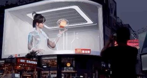 前者目前以裸眼3D屏幕為主,裸眼3D廣告往往能夠呈現(xiàn)出栩栩如生的視覺效果,雖然是廣告,但往往能吸引一大批觀眾駐足觀看并于線上自主二次傳播,達到廣告宣傳的出色效果。上了無數(shù)次熱搜的成都某古里大屏就是最好的例子,該屏甚至成了地標景點的存在,無數(shù)外地游客特意駐足打卡。
