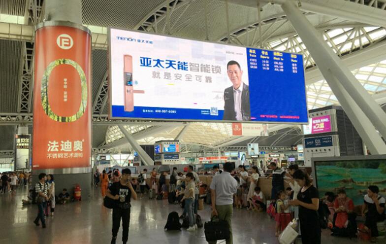 繼廣州白云國際機(jī)場第一波廣告強(qiáng)勢刷屏后,7月6日起亞太天能在廣州南站投放第二波品牌廣告,全方位霸屏LED旅客信息大屏,進(jìn)一步強(qiáng)化亞太天能智能鎖品牌的領(lǐng)軍地位!