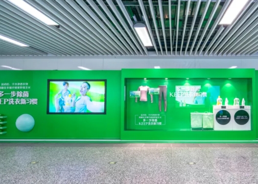 去年十月,洗護(hù)品牌滴露與運(yùn)動app KEEP跨界合作,通過線下地鐵廣告關(guān)聯(lián)認(rèn)知和互動體驗(yàn),有效提升消費(fèi)者對滴露品牌的除菌認(rèn)知。杭州的地鐵站內(nèi),滴露打造了「Dettol X Keep」運(yùn)動主題的創(chuàng)意站廳,通過地鐵通道放置熱量感應(yīng)屏,鼓勵消費(fèi)者通過互動了解運(yùn)動后的汗液會滋生細(xì)菌,傳遞「運(yùn)動后需要多一步除菌」的核心信息。