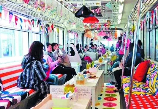 目前國外在地鐵媒體的場景體驗(yàn)方面做了很多優(yōu)秀的嘗試,例如日本宜家為宣傳在東京的新店而包下了東京一整條地鐵,在地鐵上開了一場慶祝party: