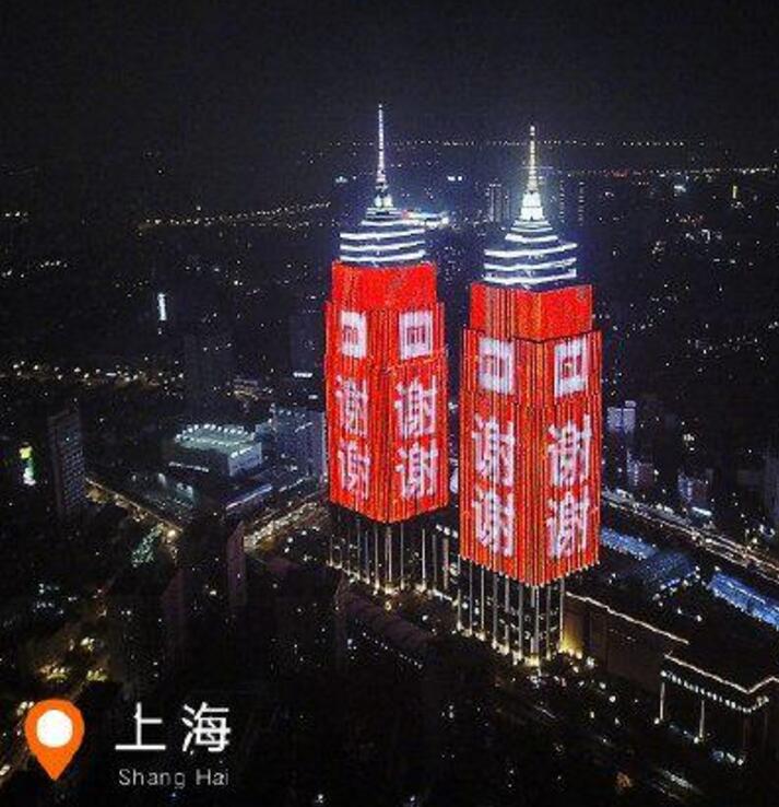 上海雙子塔樓體燈光秀廣告
